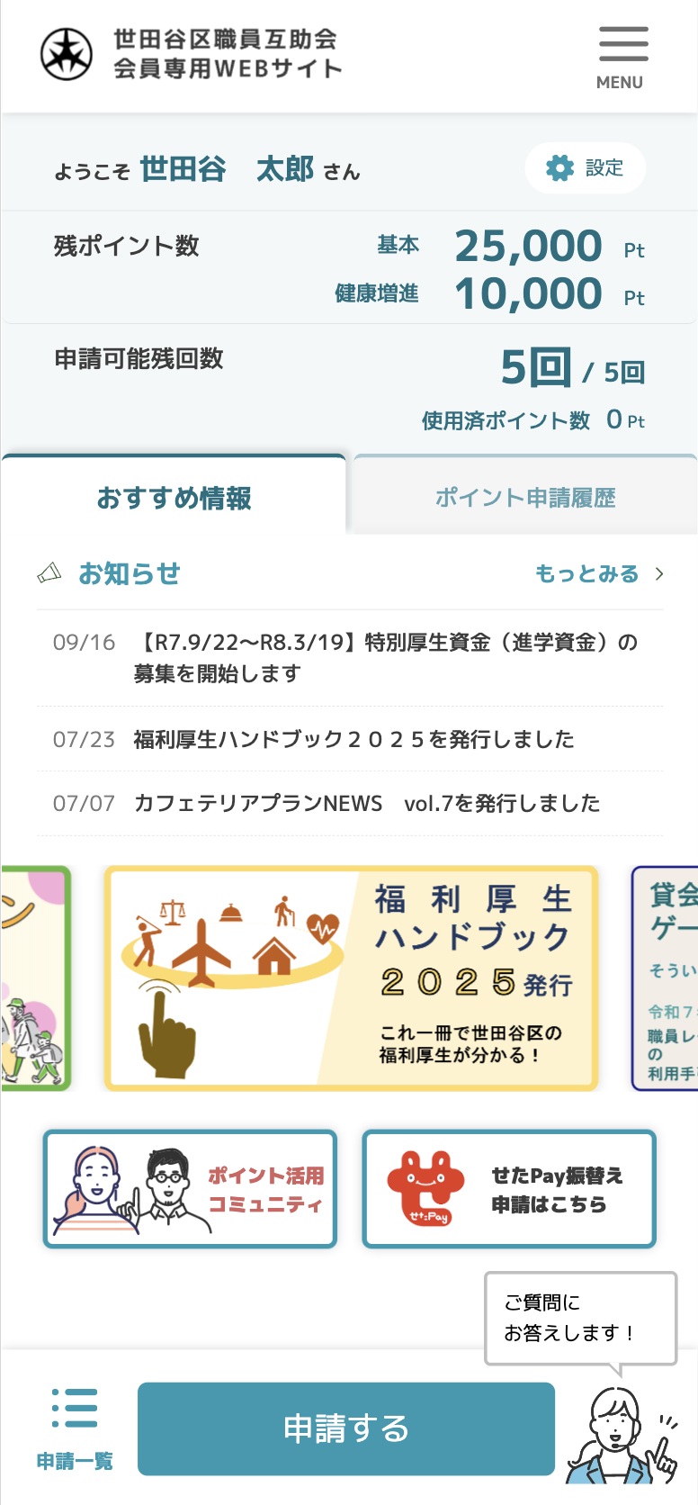会員ID(職員番号8桁)と設定したパスワードを入力し、ログインをタップします。